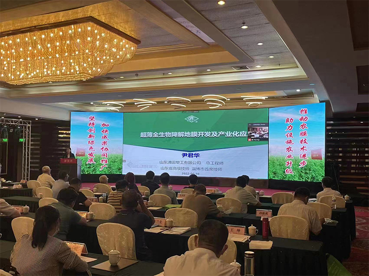 2022年設(shè)施農(nóng)業(yè)與農(nóng)膜新技術(shù)學(xué)術(shù)研討會在山東淄博舉行,我公司作為本次會議協(xié)辦單位參會,清田塑工董事長尹君華就“超薄生物降解地膜專用料開發(fā)及產(chǎn)業(yè)化應(yīng)用”課題做了課題匯報,同時我公司生產(chǎn)車間及全生物降解地膜試驗田為本次會議的主要觀摩地。