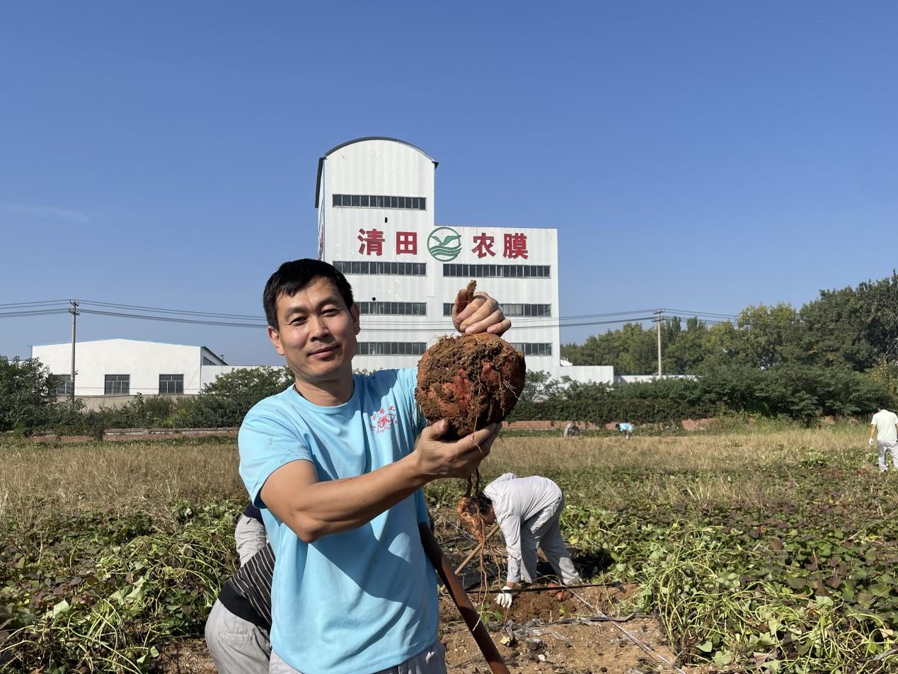 金秋十月,碩果累累,甘薯喜獲大豐收,在山東清田塑工有限公司示范基地進(jìn)行的覆蓋技術(shù)試驗(yàn)取得了圓滿成功,此項(xiàng)目于2024年5月11日進(jìn)行覆膜,2024年10月12日進(jìn)行測產(chǎn),歷時(shí)五個(gè)月時(shí)間。清田塑工研發(fā)團(tuán)隊(duì)現(xiàn)場對(duì)示范地進(jìn)行測量劃線并記錄試驗(yàn)數(shù)據(jù),銷售團(tuán)隊(duì)現(xiàn)場學(xué)習(xí)了解地膜覆蓋效果及后期降解情況,覆蓋前期具有保水、增溫、保墑、壓草效果,提高作物產(chǎn)量和品質(zhì),后期全生物降解地膜可自然降解直接翻耕,免回收處理,不造成土壤農(nóng)膜殘留,已完全滿足客戶需求。